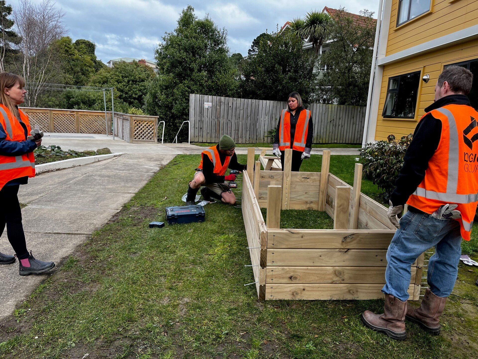 On Friday 12th August, our Dunedin team equipped with shovels, hammers, and power tools headed to a Kainga Ora residential site to built garden plots and compost bins.